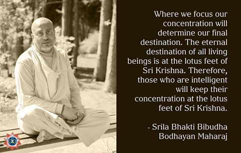 Where we focus our concentration will determine our final destination. The eternal destination of all living beings is at the lotus feet of Sri Krishna. Therefore, those who are intelligent will keep their concentration at the lotus feet of Sri Krishna.