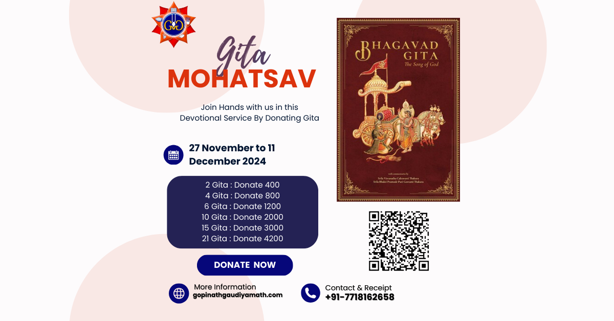 Gita Mahotsav (27th Nov–11th Dec 2024) is a sacred mission to share the timeless wisdom of the Srimad Bhagavad Gita. This celebration offers you a unique chance to participate in… Continue reading Gita Mahotsav 2024